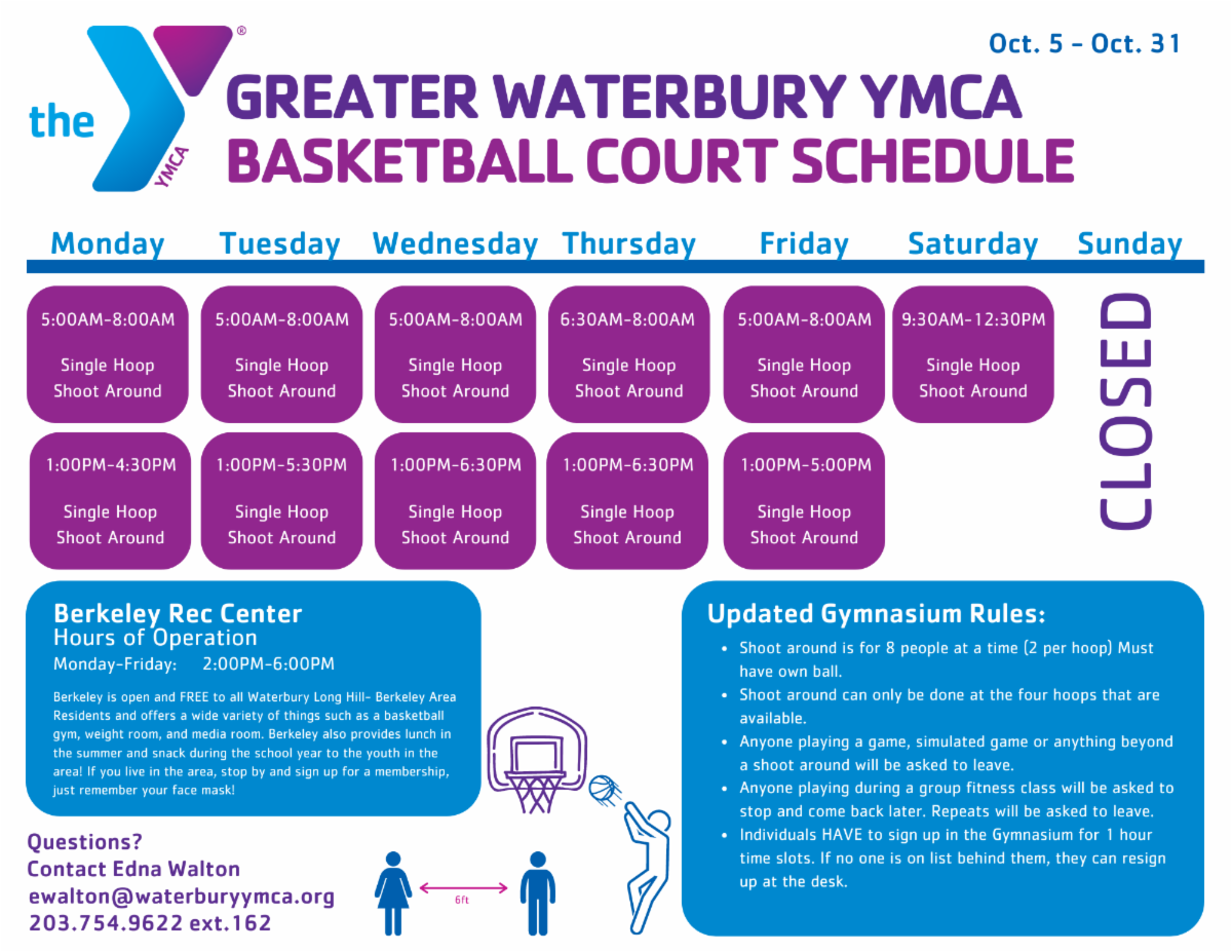 The basketball Court Schedule updated to reflect our new hours and the new class schedule!
